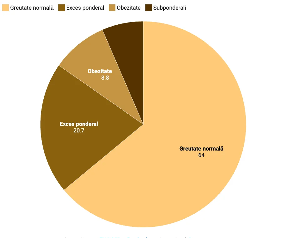 Mai exact, 20,7% dintre elevii de clasa I au supraponderalitate, 8,8% au obezitate și 6,5% sunt subponderali — un alt semn al dezechilibrelor alimentar.
