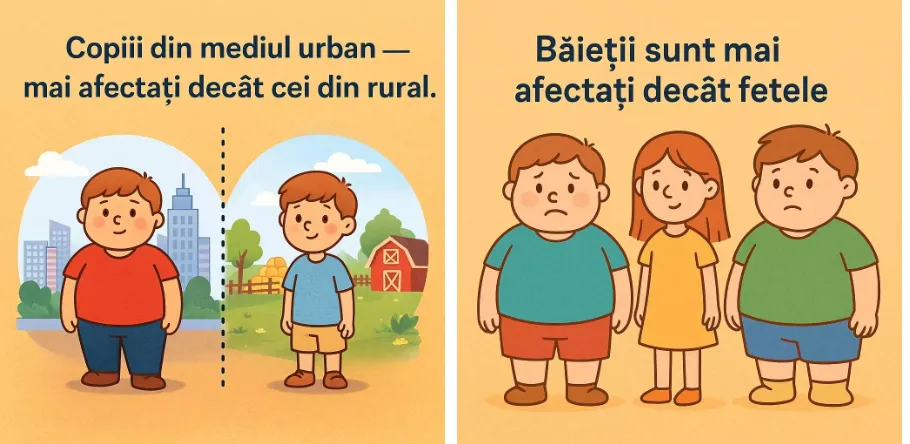 Copiii din mediul urban — mai afectați decât cei din rural. Iar copiii ai căror părinți au un nivel educațional redus sunt mai predispuși la obezitate.