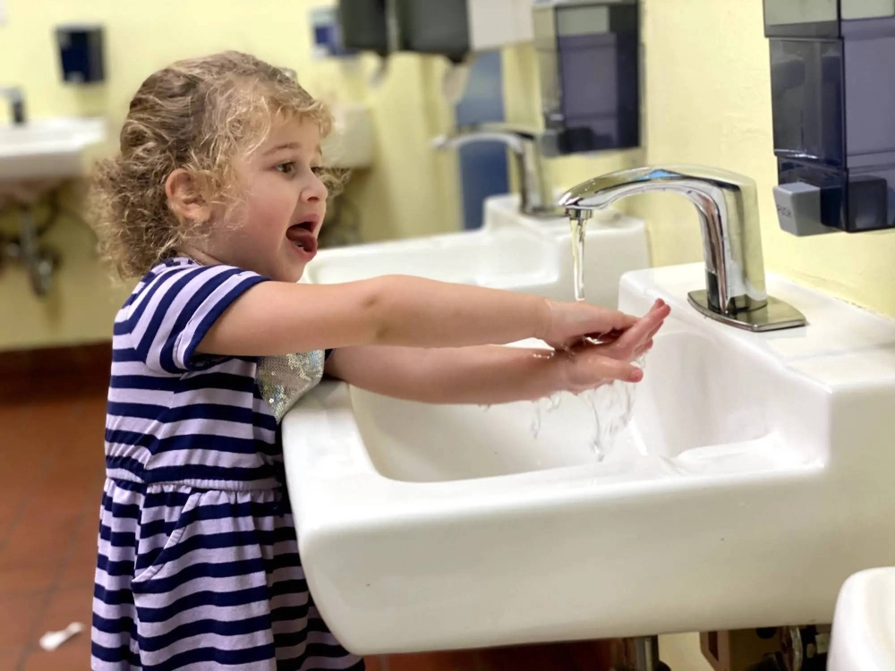 Repetiția este cheia succesului! Antrenează-l acasă, simulând utilizarea toaletei de la școală. Îl poți învăța să atingă cât mai puține suprafețe și să folosească cotul sau șervețele de hârtie pentru a deschide ușile. Exersați spălatul corect pe mâini și cum să folosească hârtia igienică corespunzător. Totul devine mai ușor când a practicat deja!