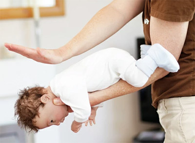 Copilul se va intoarce cu fata in jos, fiind tinut pe un brat, astfel incat mana ta sa sprijine barbia sa.